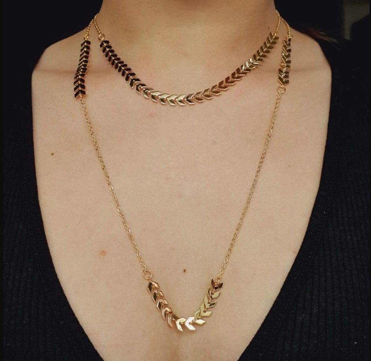 Colar Feminin Dupla Camadas Ouro 18k Antialérgico com Escamas de Peixe