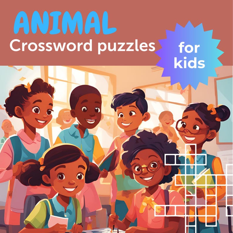 Animal Crossword Puzzle for Kids Etsy