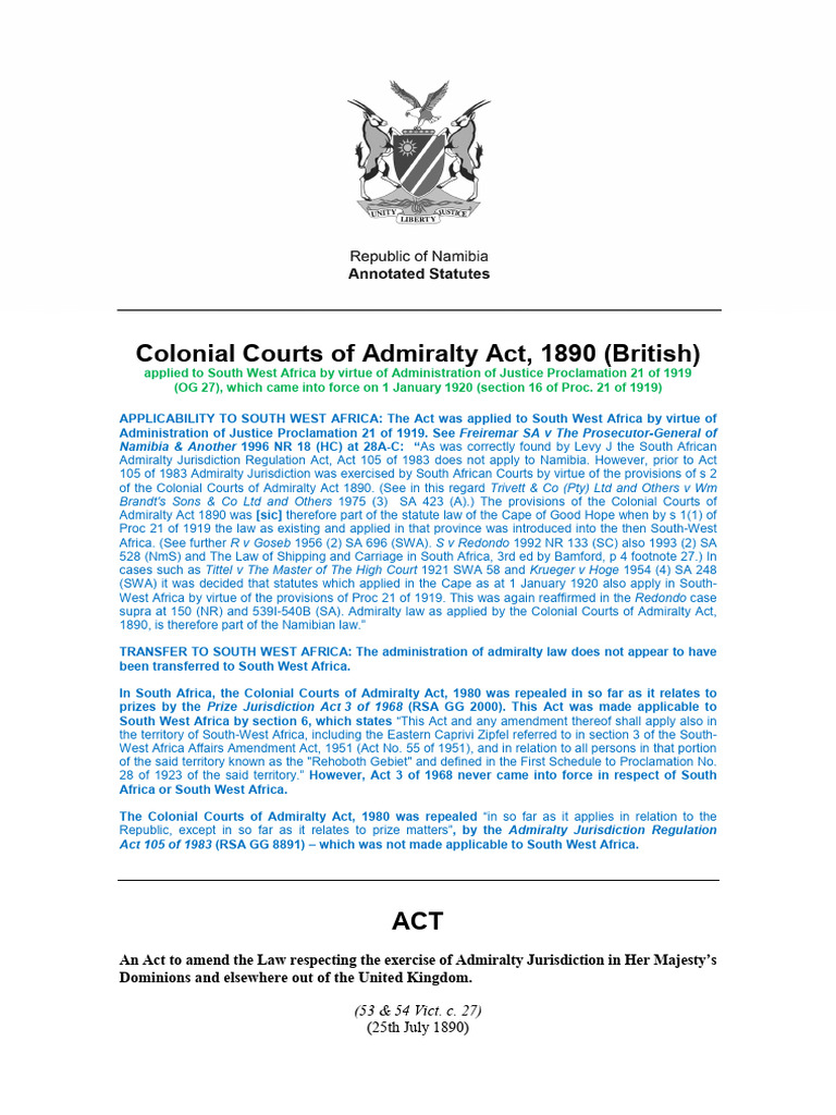 Colonial Courts of Admiralty Act 1890 PDF Admiralty Court