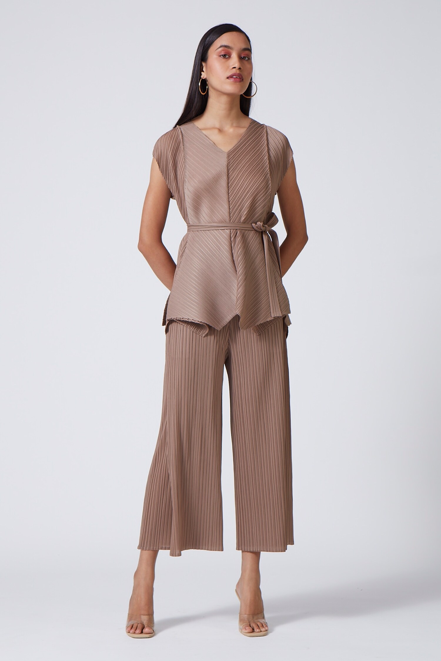 Buy Grey 100% Polyester V Neck Nia Asymmetric Hem Top And Pant Set For