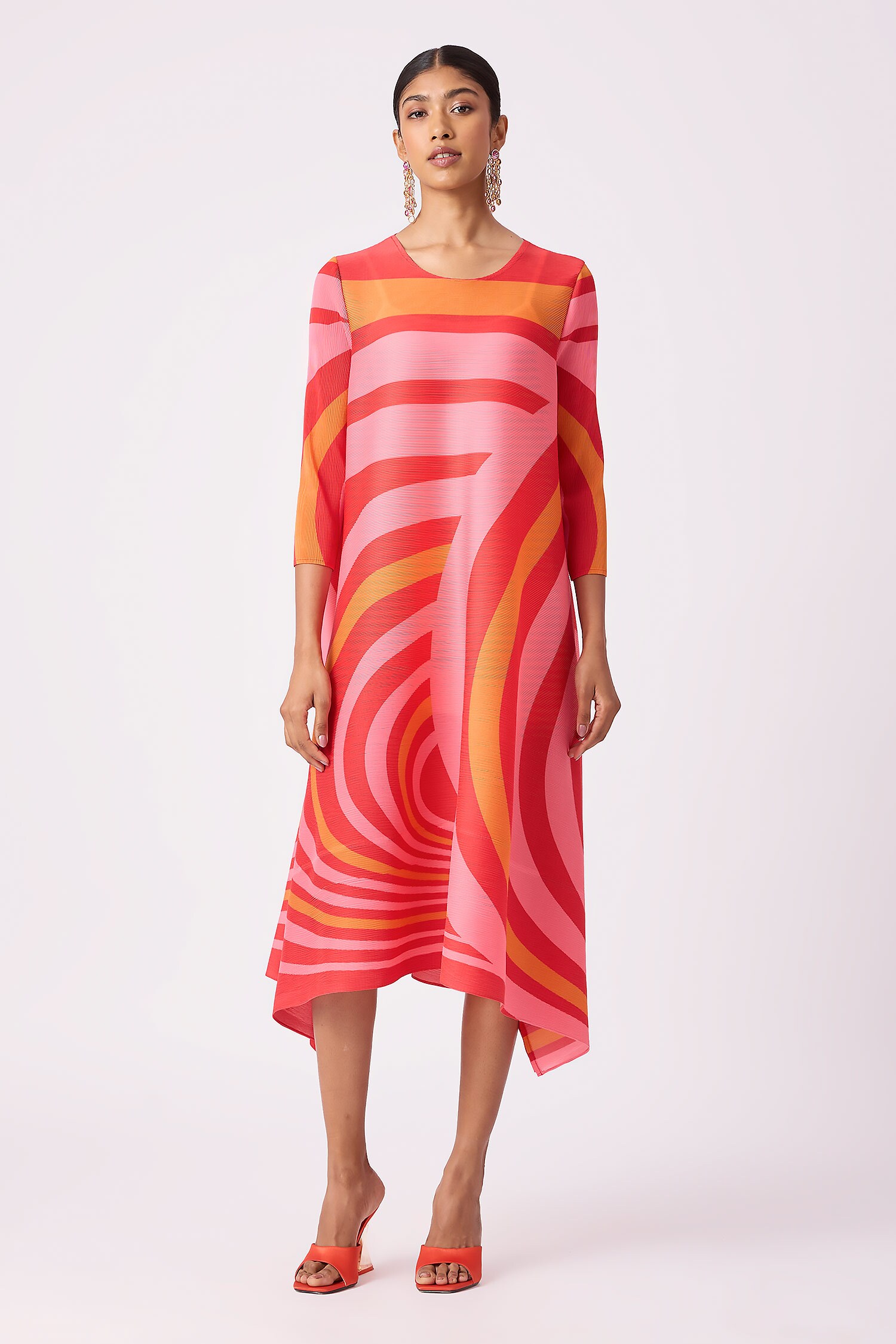 Buy Scarlet Sage Red Polyester Krystina Pleated Swirl Print Dress
