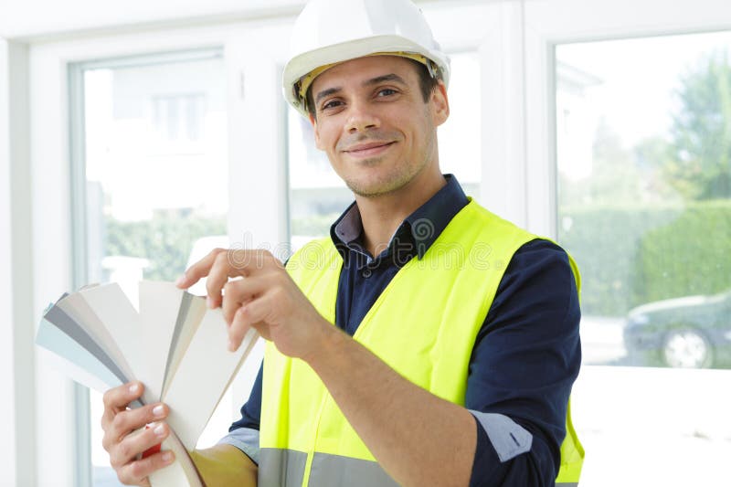 male worker choosing a color Stock Photo Alamy