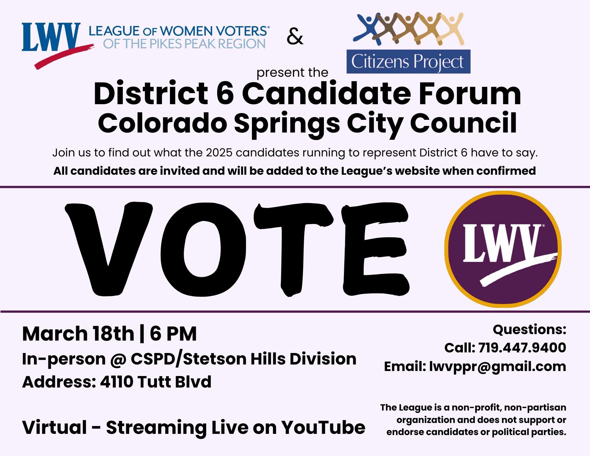 Colorado Springs District 6 Candidate Forum Events League of