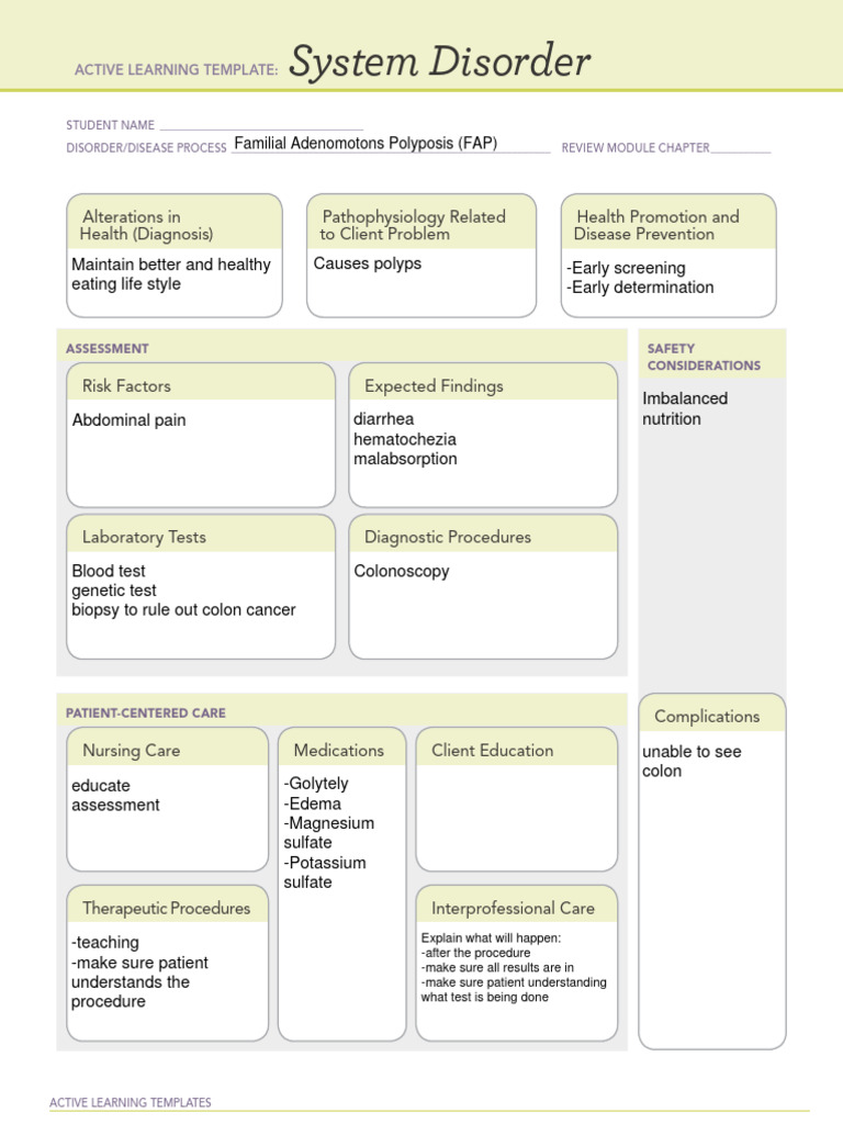 colon cancer SDS pdf ACTIVE LEARNING TEMPLATE: System Disorder