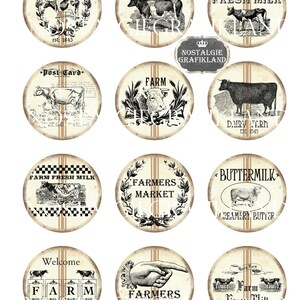 Farm Fresh Milk Printable Circles Cow Journaling Farming 2 Inch Round