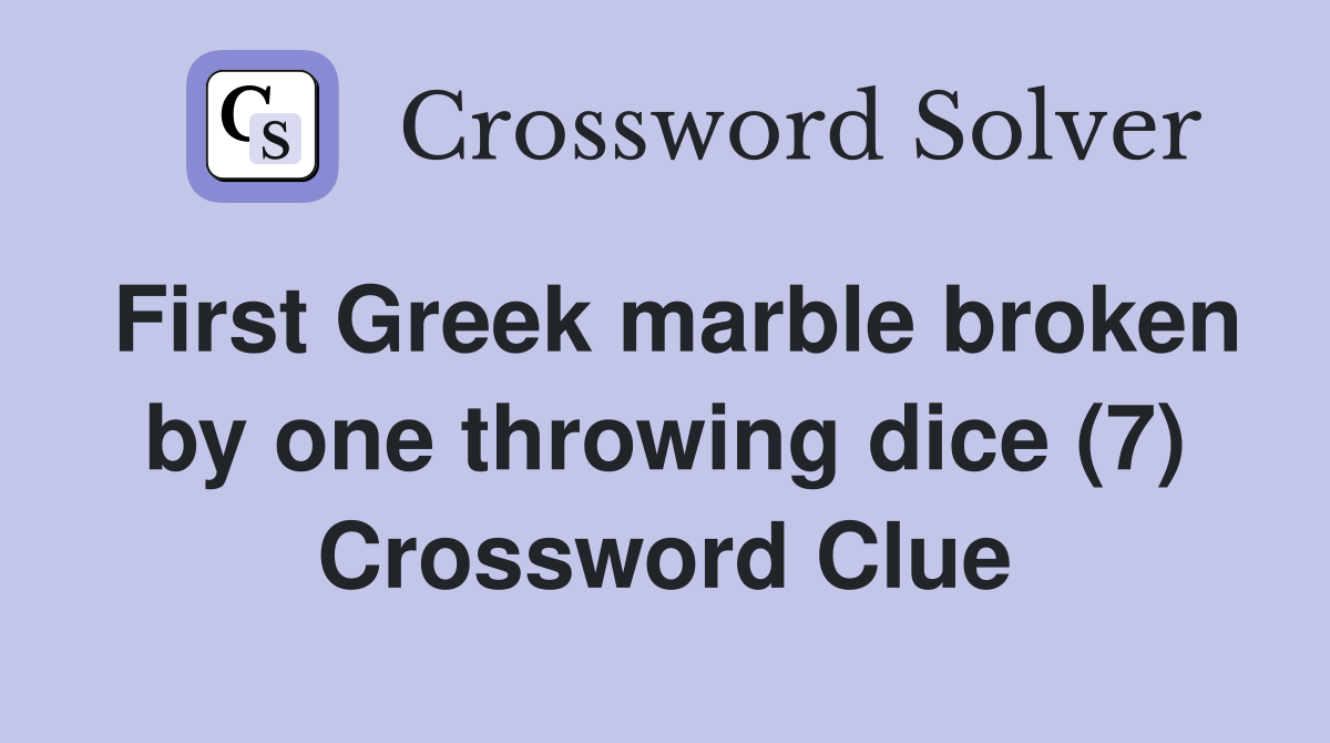 First Greek marble broken by one throwing dice (7) Crossword Clue