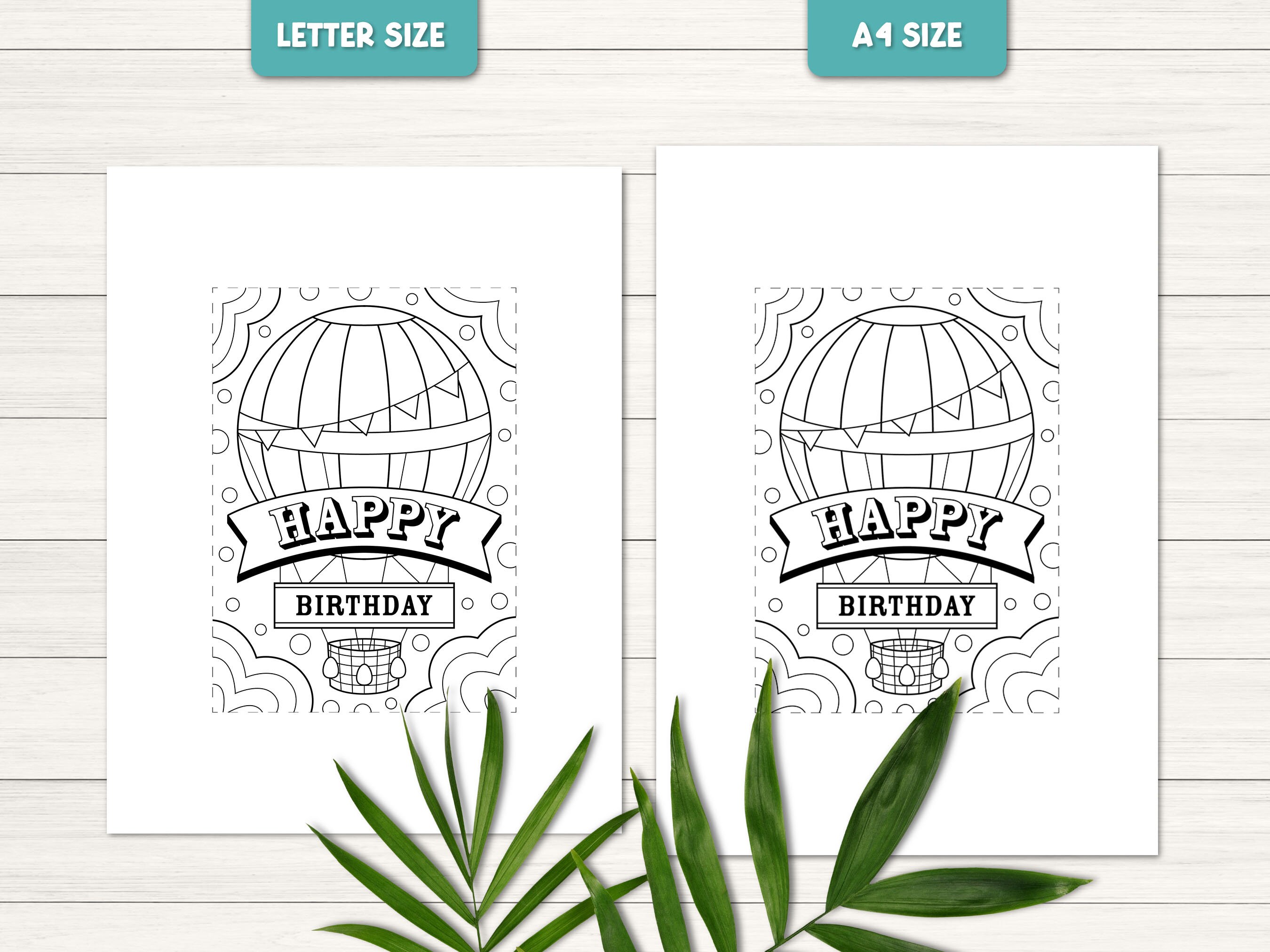 Printable Coloring Happy Birthday Card Cake Balloons Party Etsy
