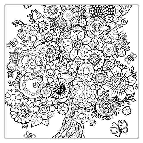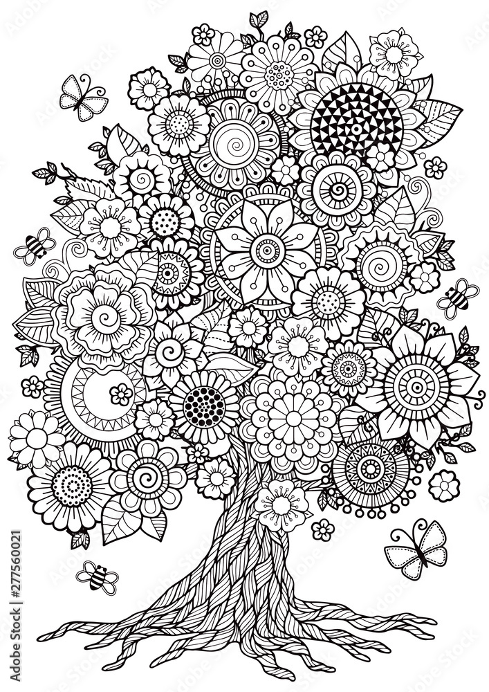 Printable Coloring Page Adults Tree Flowers Stock Vector (Royalty Free