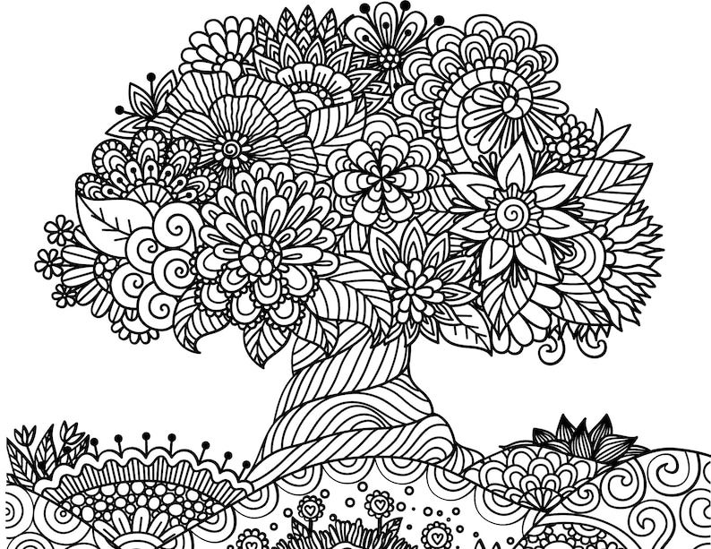 Flowers Tree forColoring Pages 8877360 Vector Art at Vecteezy