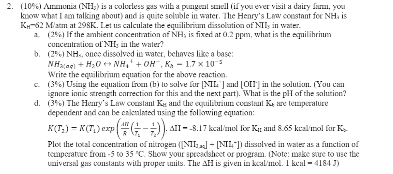 (10%) Ammonia (NH3) is a colorless gas with a pungent Chegg com