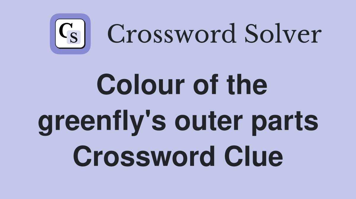 Colour of the greenfly #39 s outer parts Crossword Clue Answers