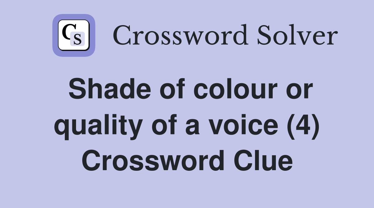 Shade of colour or quality of a voice (4) Crossword Clue Answers
