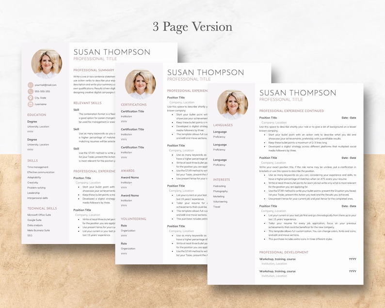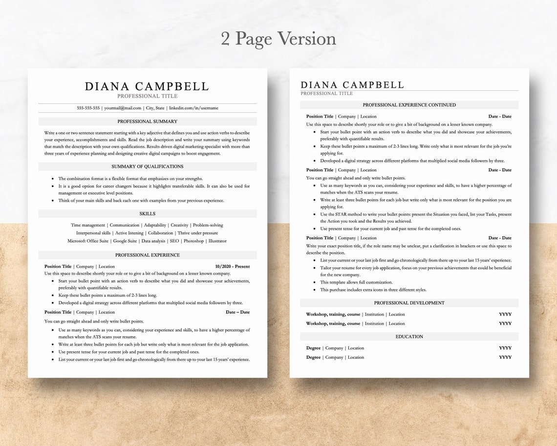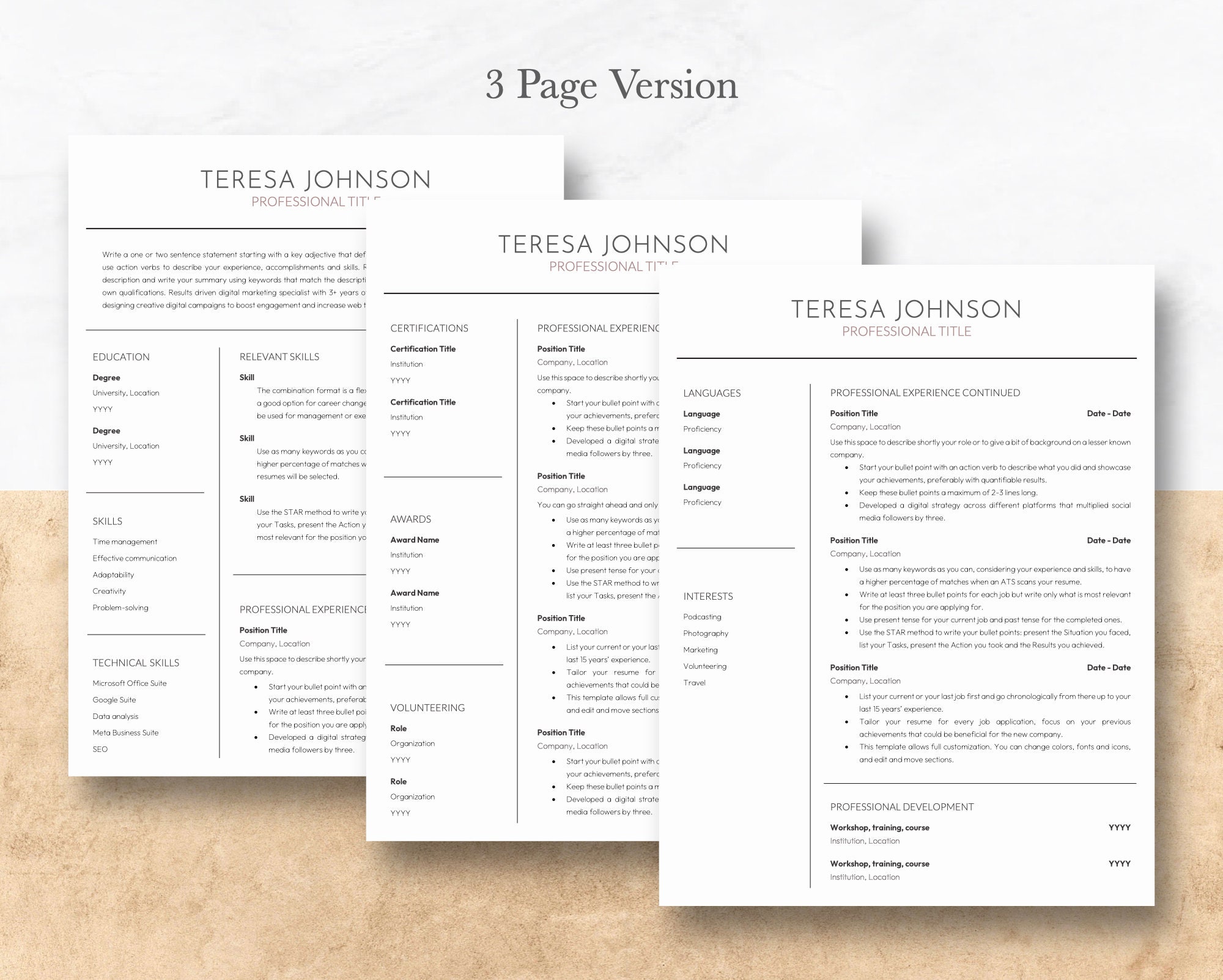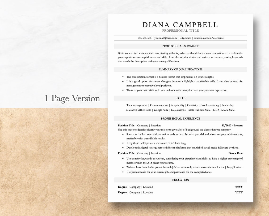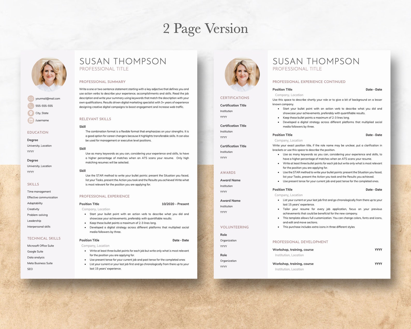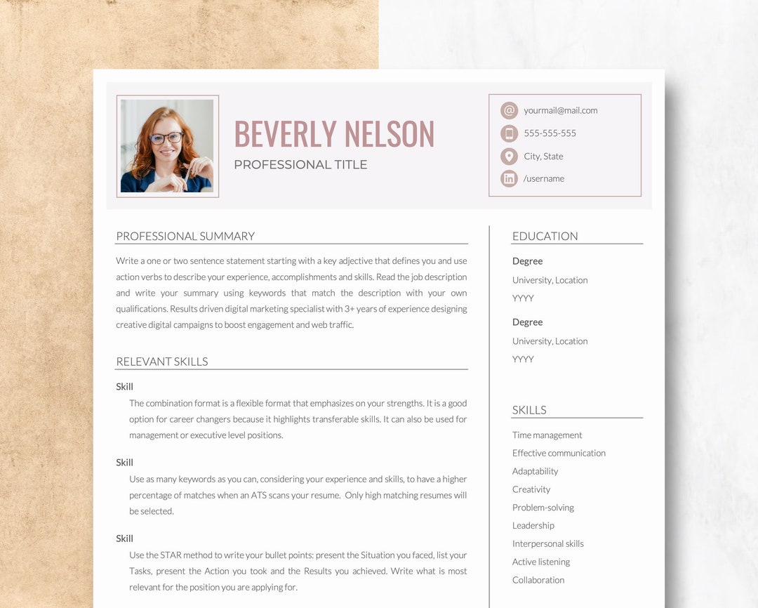 Combination Resume Template With Photo for Google Docs Word Etsy