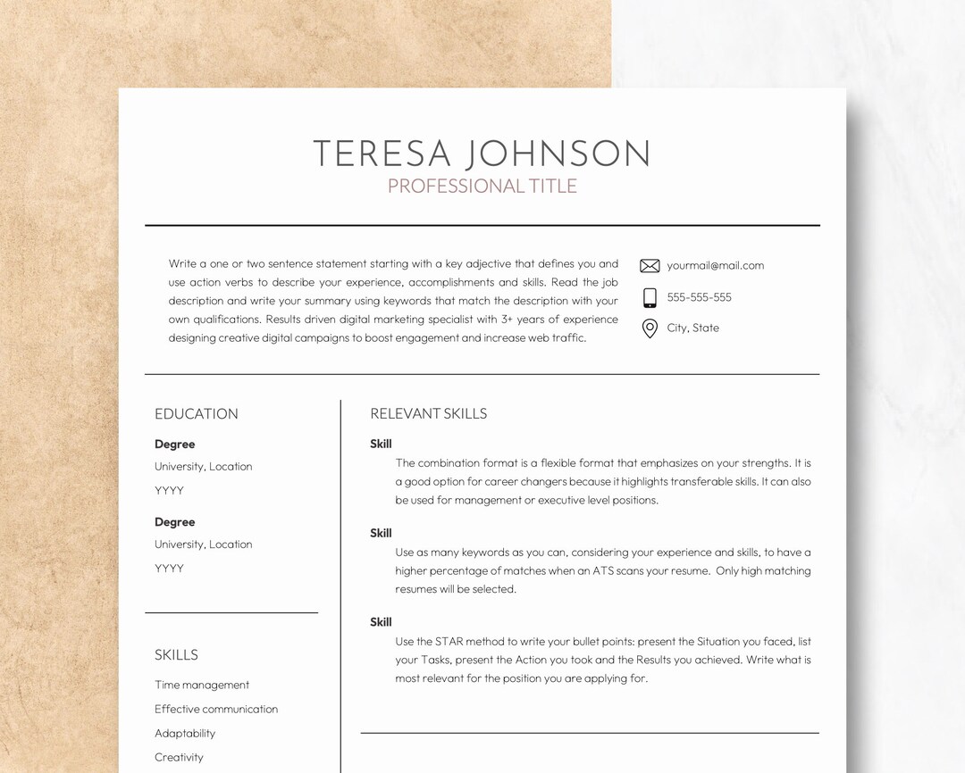 Combination Resume Template Google Docs Word Apple Pages Mac Skills
