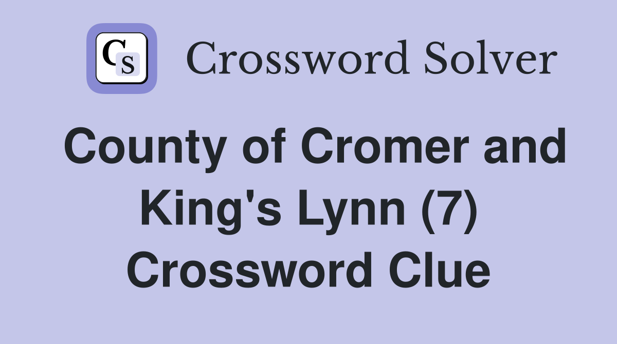 County of Cromer and King #39 s Lynn (7) Crossword Clue Answers