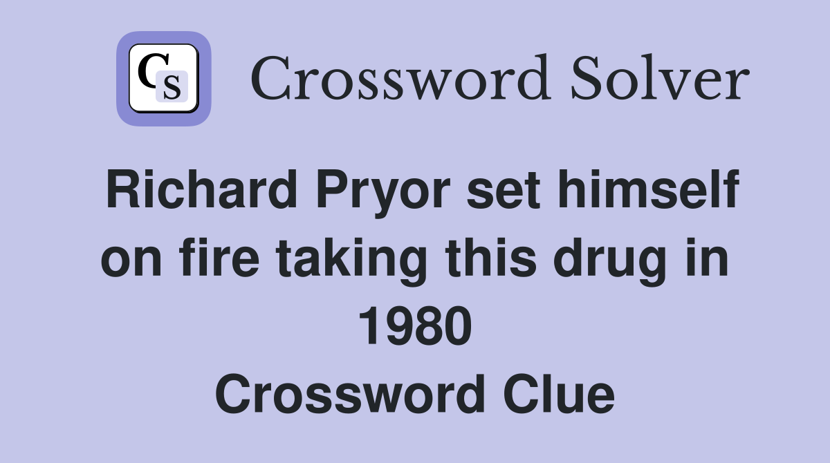 Richard Pryor set himself on fire taking this drug in 1980 Crossword