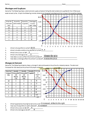 Surplus Shortage Equilibrium Worksheet pdf Name: Date: Combining