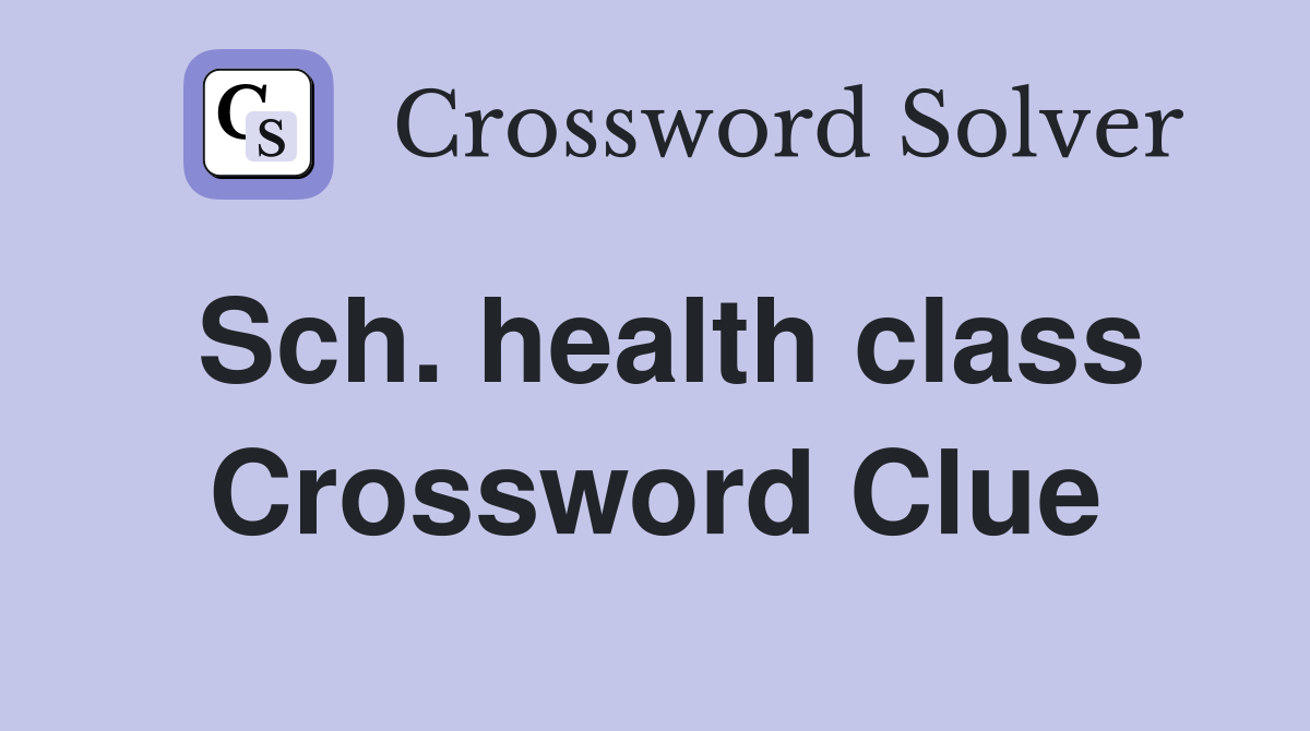Sch health class Crossword Clue Answers Crossword Solver