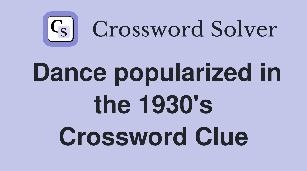 Dance popularized in the 1930 #39 s Crossword Clue Answers Crossword Solver