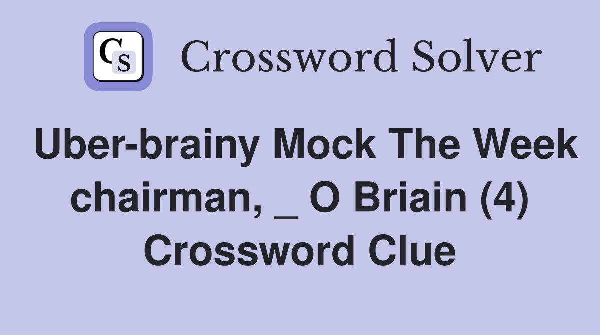 Uber brainy Mock The Week chairman O Briain (4) Crossword Clue