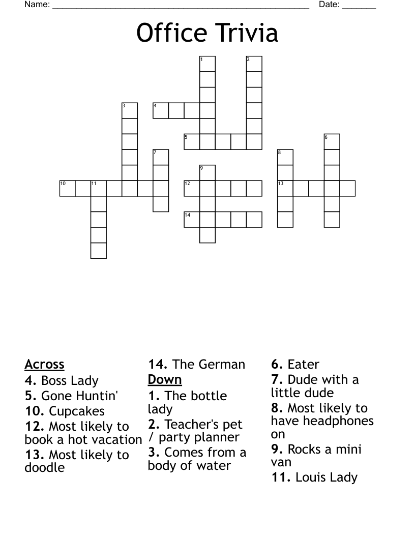 Here are some of the images for Come To My Office Crossword that we found in our website database.