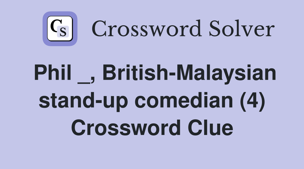 Phil British Malaysian stand up comedian (4) Crossword Clue