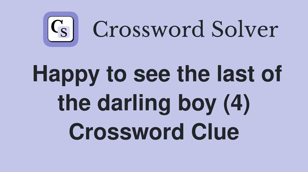 Happy to see the last of the darling boy (4) Crossword Clue Answers