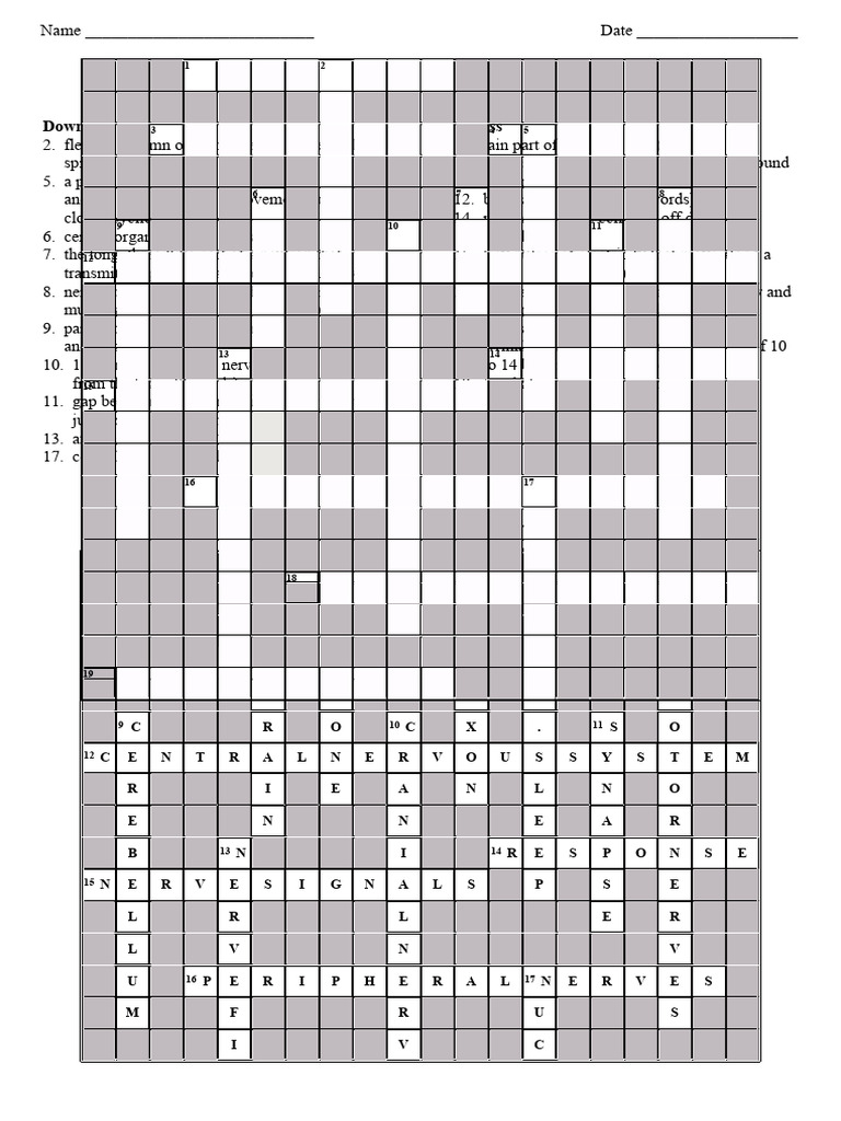 Central Nervous System CROSSWORD PDF Neuron Nerve