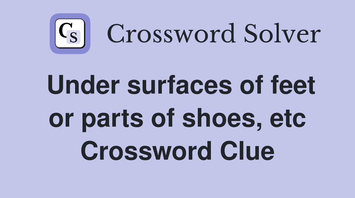 Under surfaces of feet or parts of shoes etc Crossword Clue Answers