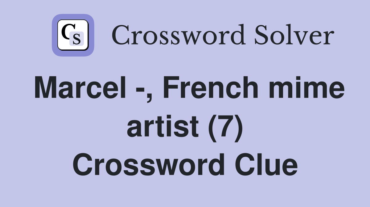 Marcel French mime artist (7) Crossword Clue Answers Crossword