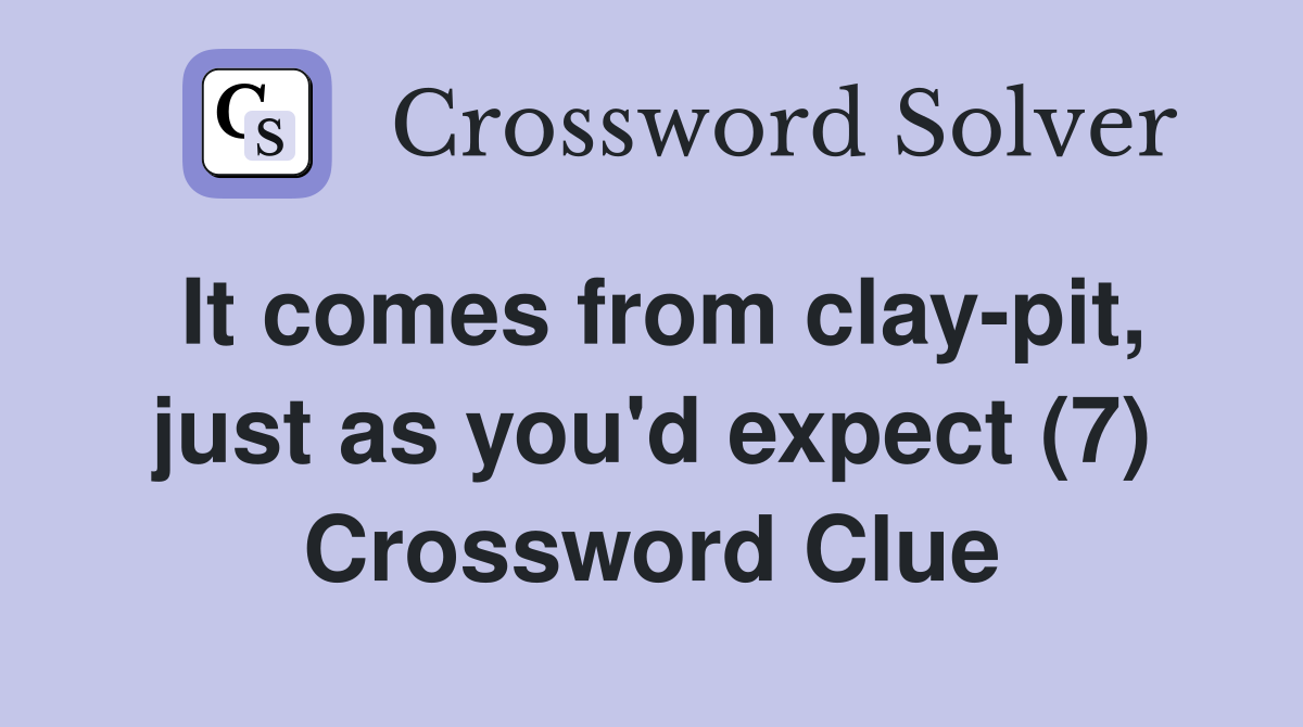 It comes from clay pit just as you #39 d expect (7) Crossword Clue