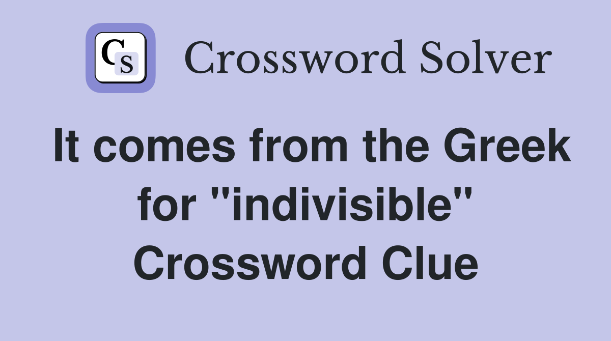 It comes from the Greek for quot indivisible quot Crossword Clue Answers