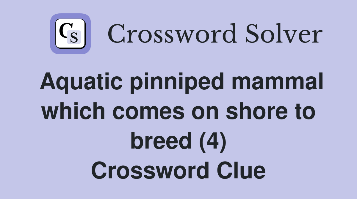 Aquatic pinniped mammal which comes on shore to breed (4) Crossword