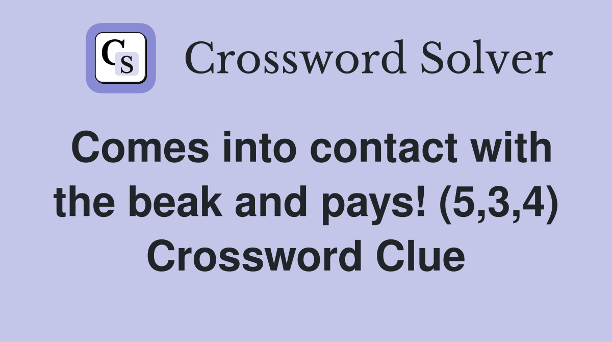 Comes into contact with the beak and pays (5 3 4) Crossword Clue