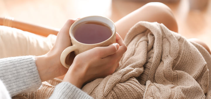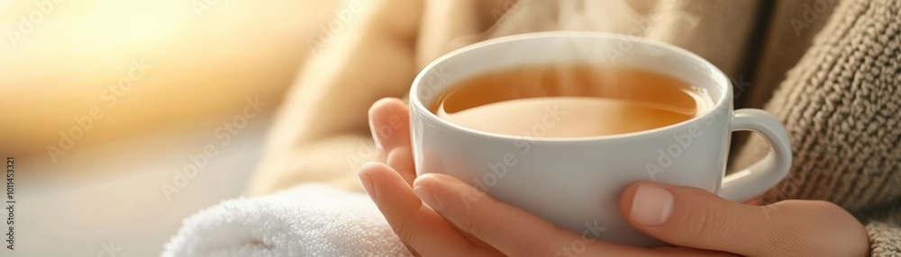 Relaxing at Home with a Warm Cup of Tea in a Cozy Bathrobe Comforting