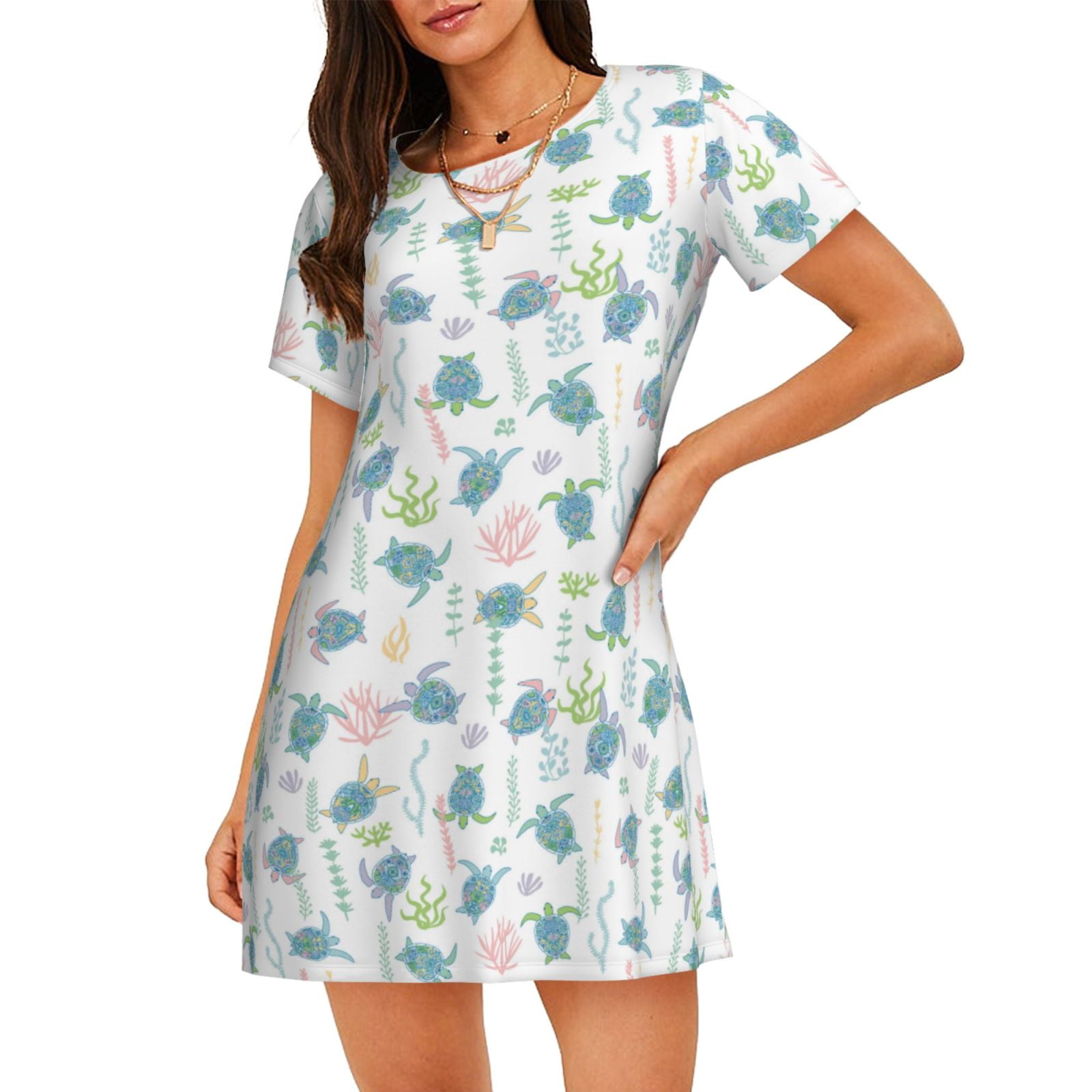 Coaee Sea Turtle for Women #39 s Short sleeved Nightdress Casual Sleepdress