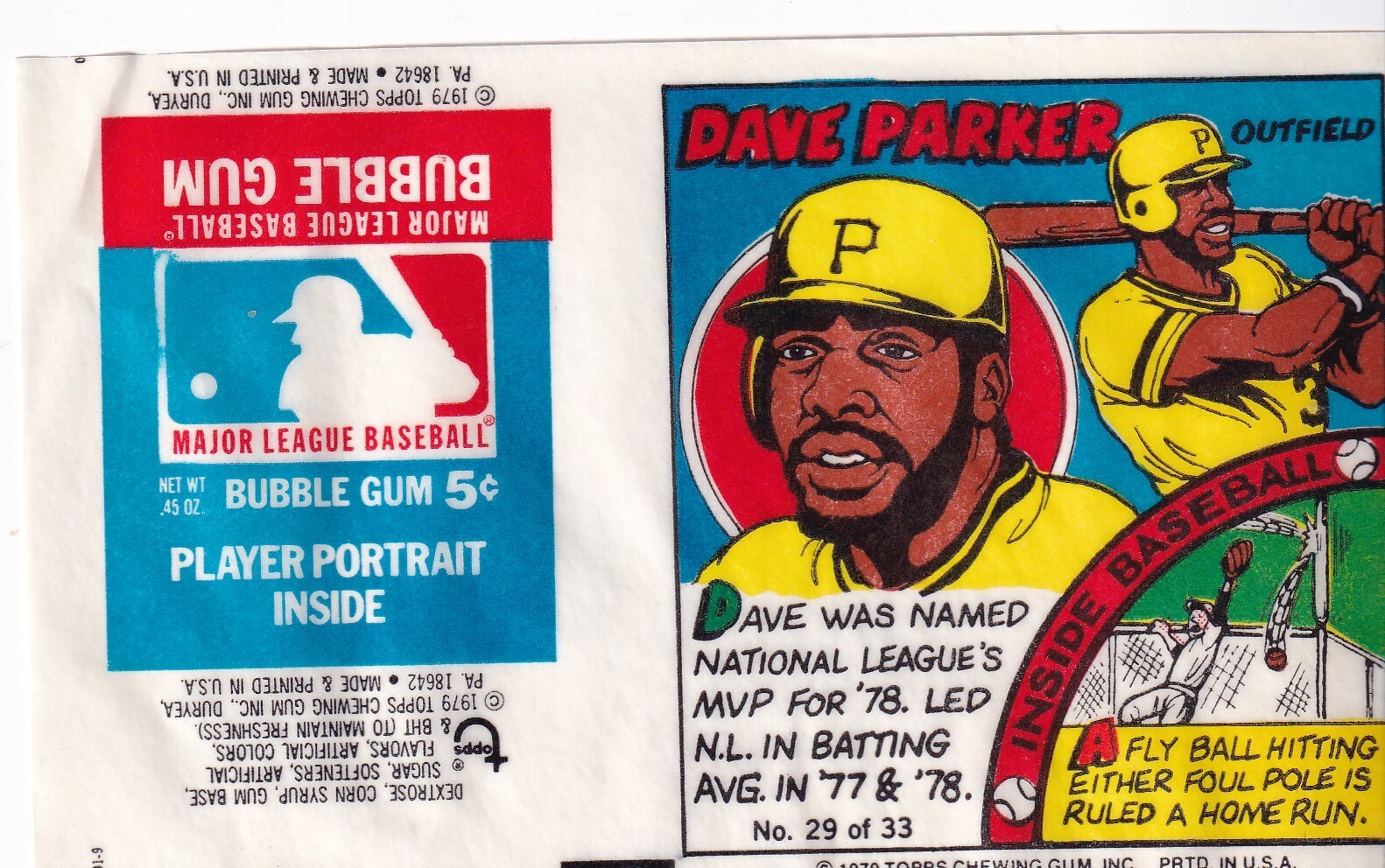 Dave Parker 1979 Topps Bazooka Full Gum Comic Cartoon Wrapper # 29 eBay