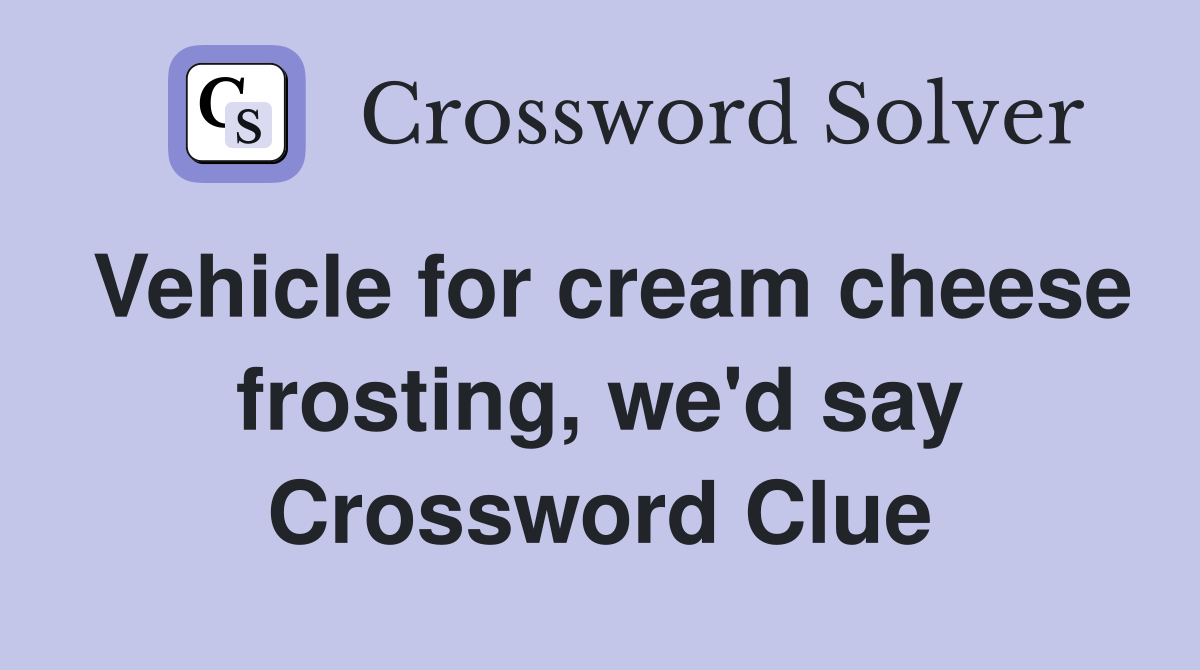 Vehicle for cream cheese frosting we #39 d say Crossword Clue Answers