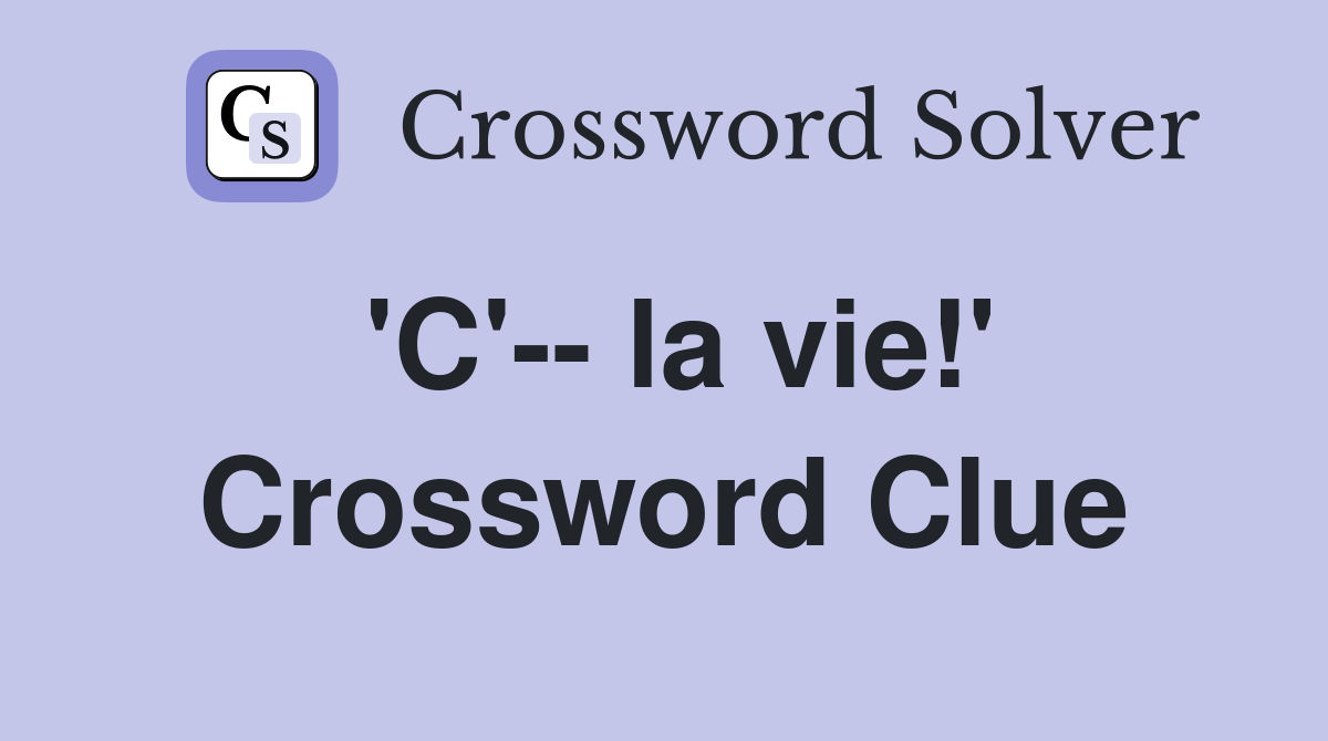 #39 C #39 la vie #39 Crossword Clue Answers Crossword Solver