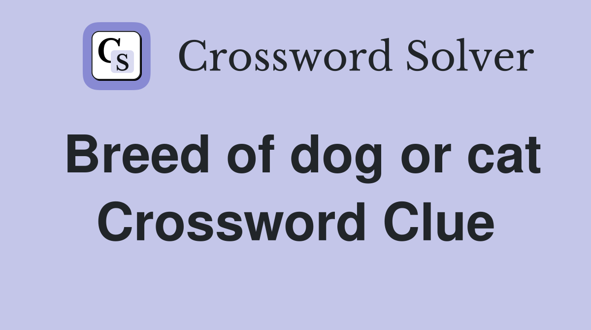 Breed of dog or cat Crossword Clue Answers Crossword Solver