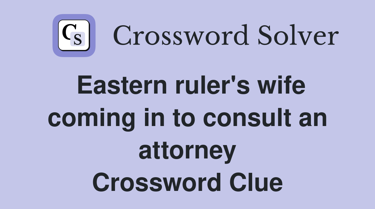 Eastern ruler #39 s wife coming in to consult an attorney Crossword Clue