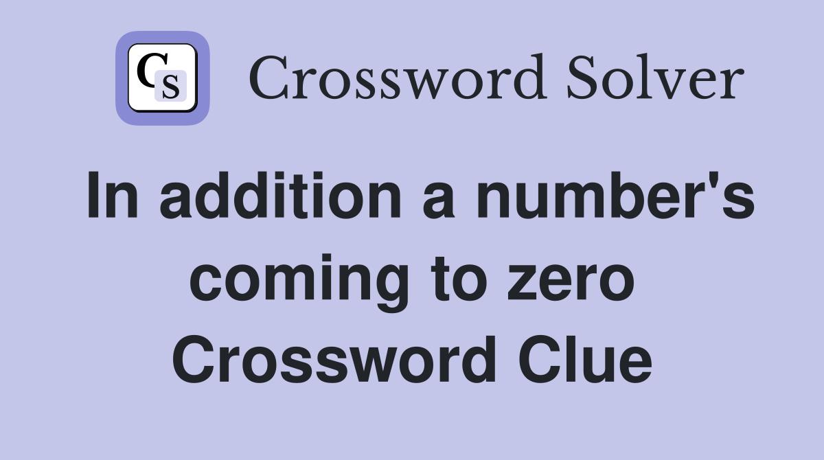 In addition a number #39 s coming to zero Crossword Clue Answers