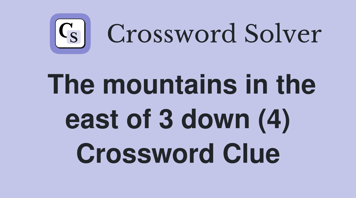 The mountains in the east of 3 down (4) Crossword Clue Answers