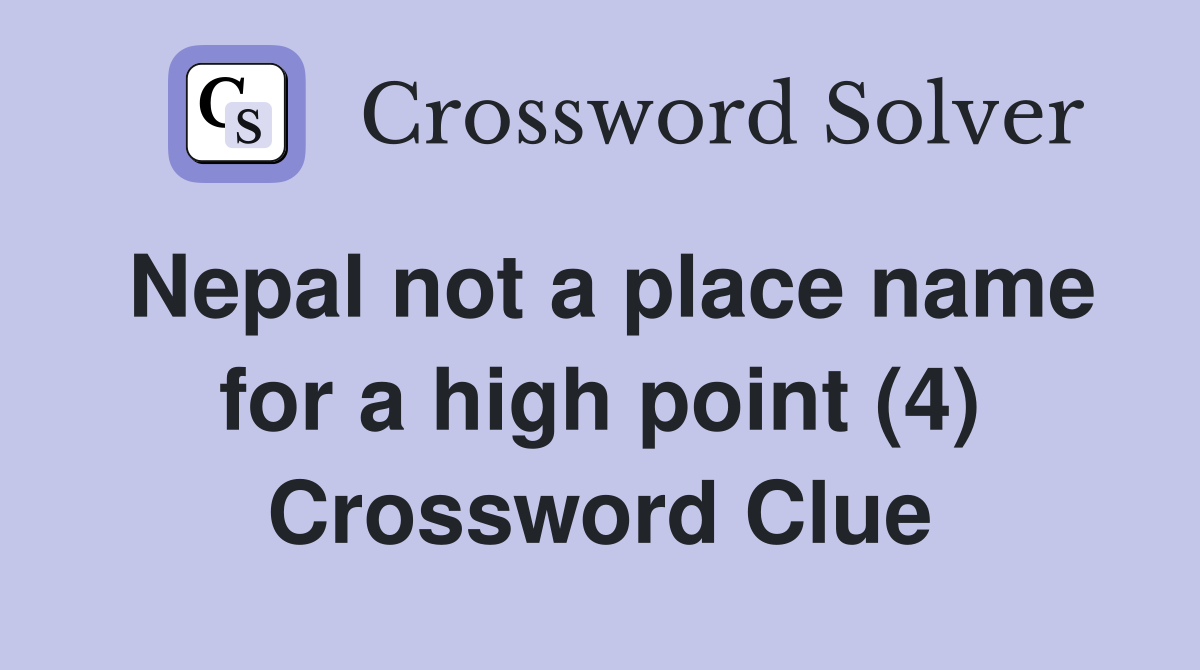 Nepal not a place name for a high point (4) Crossword Clue Answers