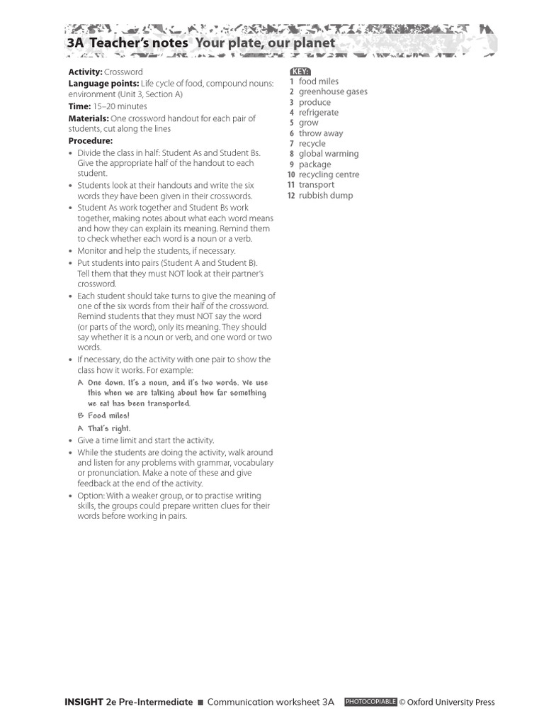 Insight2e Preint Comm Worksheet 3A Ak PDF Crossword Linguistics