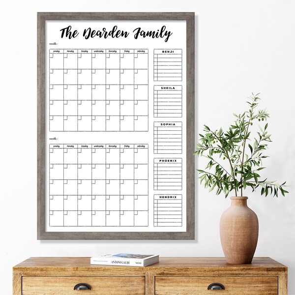Custom Calendar for Family Command Center Dry Erase Wall Calendar