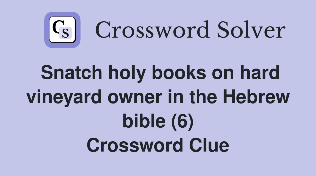 Snatch holy books on hard vineyard owner in the Hebrew bible (6