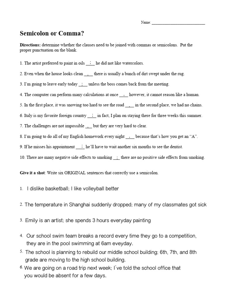 Here are some of the images for Commas And Semicolons Worksheet that we found in our website database.
