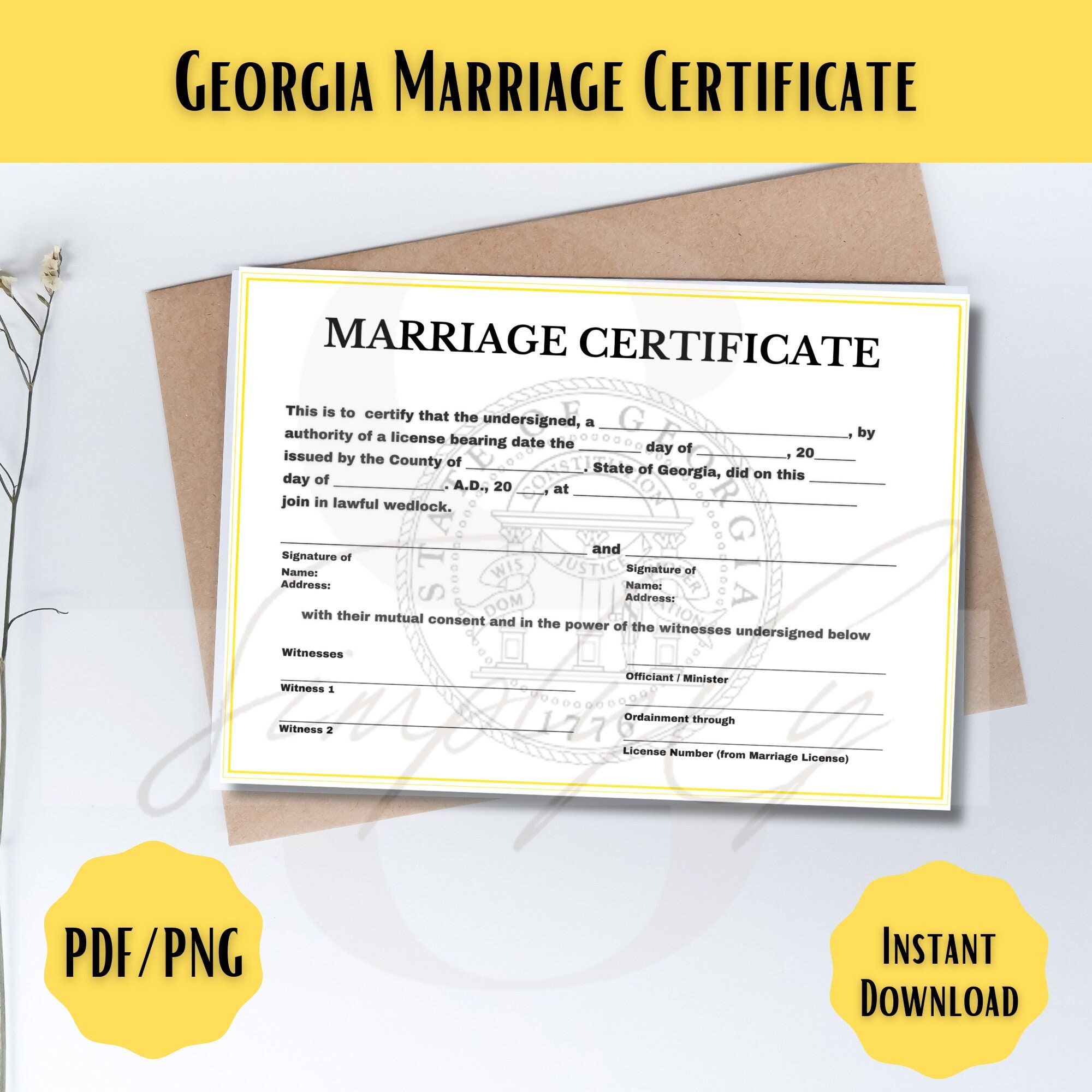 Georgia Commemorative Marriage Certificate Digital Download Georgia