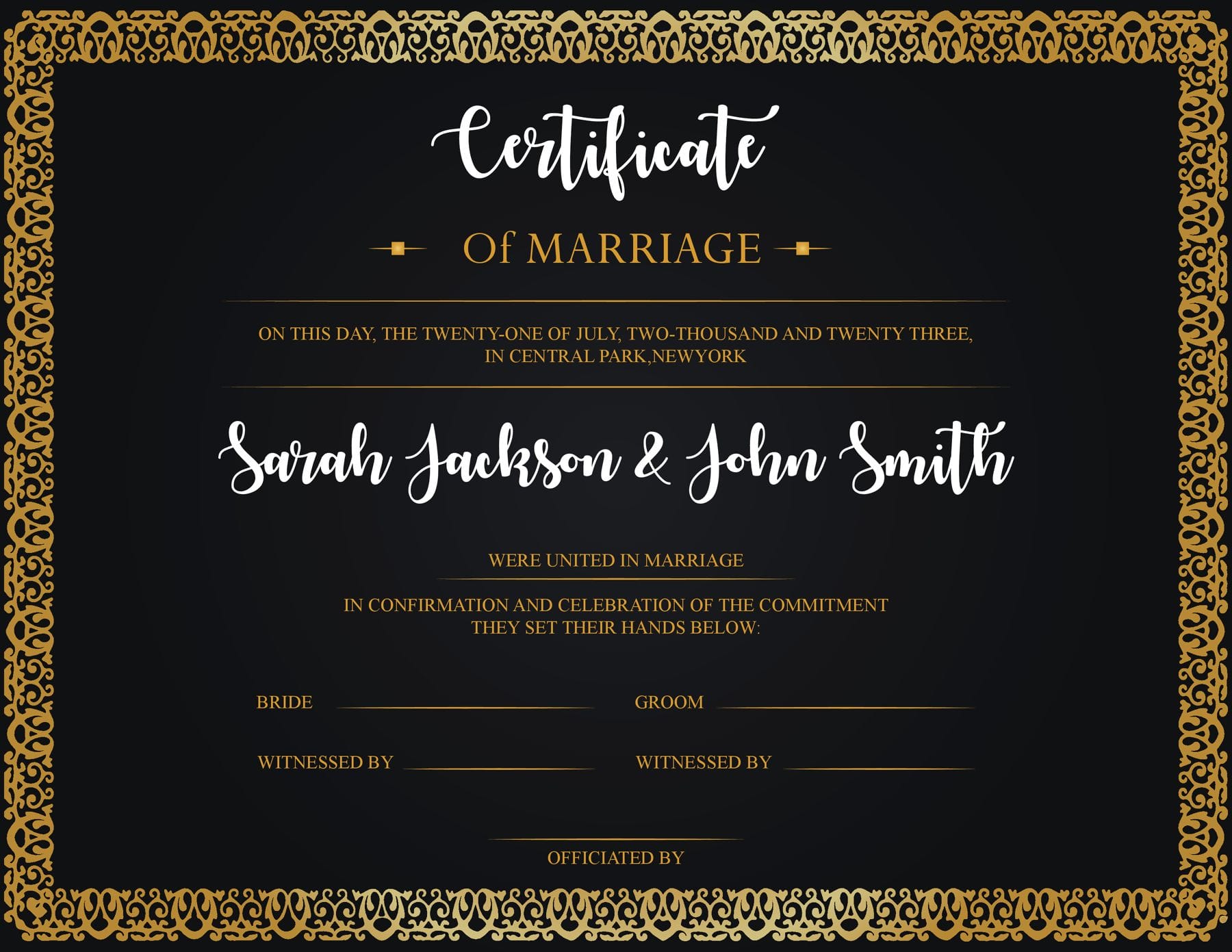 Golden Commemorative Marriage Certificate Template